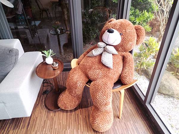 還有一隻大大的泰迪熊和日式的戶外小庭院