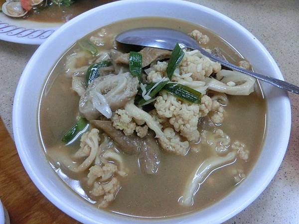 這花椰菜乾脆脆的口感加上事先滷過的大腸一起拌炒