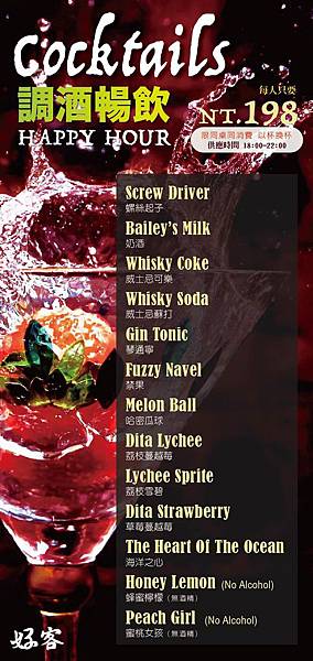 同時再另加198的調酒無限暢飲。。。