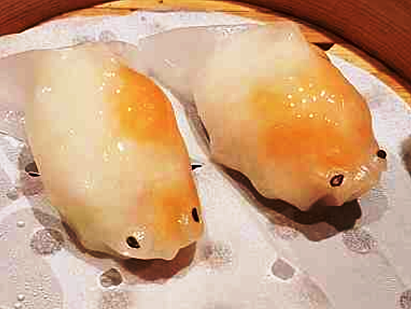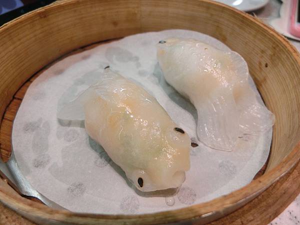瑞餚姐: 先吃兩條芹香鮮蝦金魚餃吧!。。。哎~~~好寂寞的港點之夜喔!