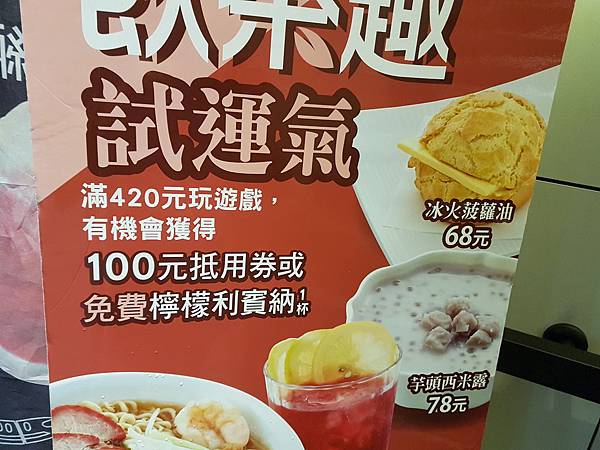 贏家可以獲得100元的折價卷或是免費的檸檬賓利納1杯