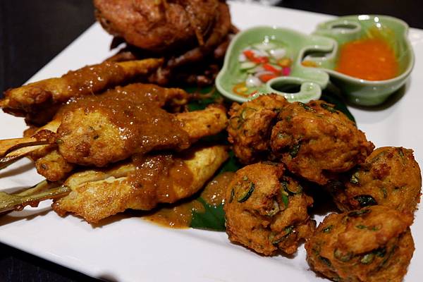 點了Thaipas拼盤,有金錢魚餅、炸雞翅與沙嗲雞肉串
