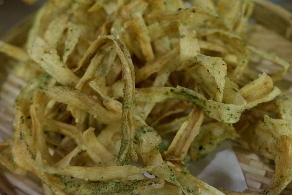 炸牛蒡條削的薄脆,搭上香氣十足的海苔粉