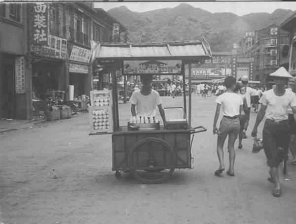 就在街道的正中央他賣著紅茶和愛玉冰