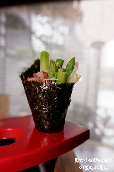 當然,你也可以來杯生啤酒搭著蘆筍手卷