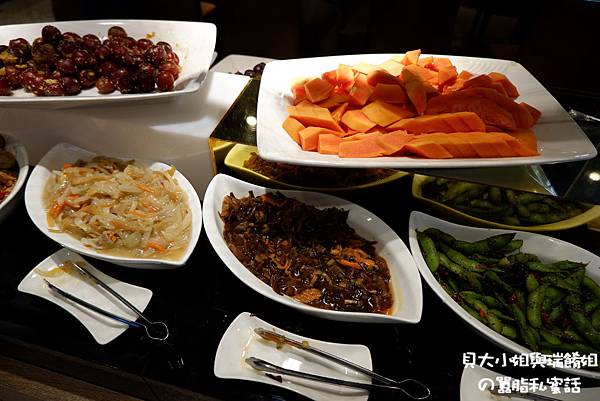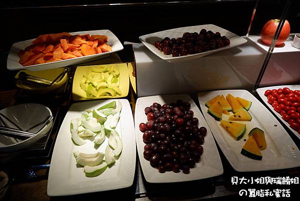 沙拉吧上的蛋糕、冰淇淋、小菜及水果無限量供應著