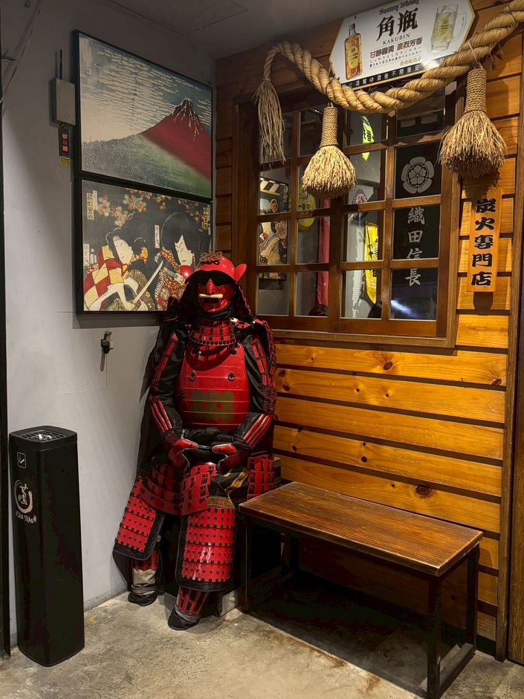 還個穿著盔甲的日本武士坐在門口